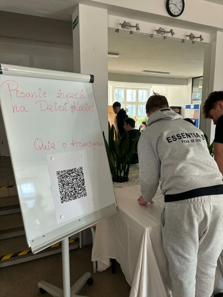 Z tej okazji przygotowano specjalne stoisko, przy którym uczestnicy mogli napisać życzenia dla wszystkich kobiet oraz wziąć udział w quizie dotyczącym kosmetyków. Wydarzeniu towarzyszyła miła atmosfera, a uśmiech i dobra zabawa były obecne przez cały czas jego trwania.