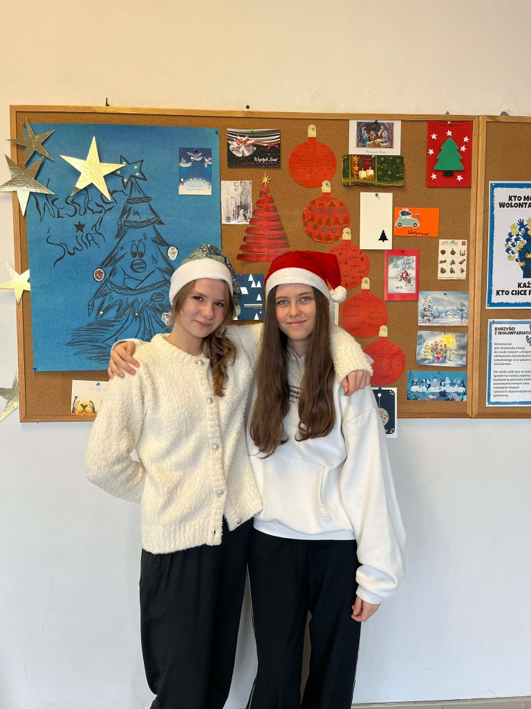 Z tej okazji uczniowie przyszli w mikołajkowych czapkach i czerwonych strojach, tworząc wyjątkowo radosną atmosferę.