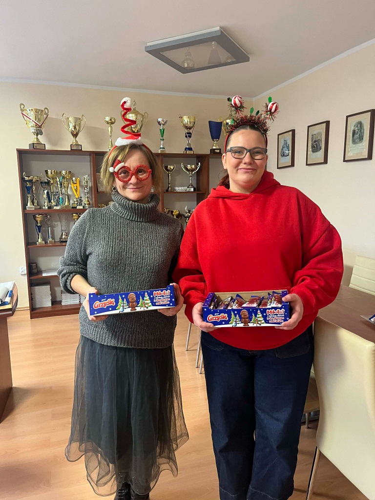 Słodkie upominki – czekoladowe Mikołaje – były rozdawane przez Panią Dyrektor oraz przewodniczącą Samorządu Uczniowskiego, co wywołało uśmiechy na twarzach uczniów.