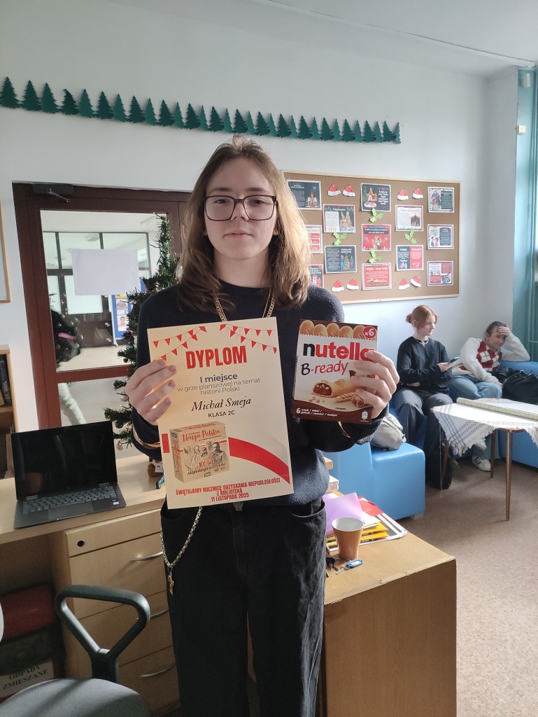Zwycięzcą został Michał Smeja (2C), który otrzymał dyplom, ocenę z historii oraz słodki upominek.