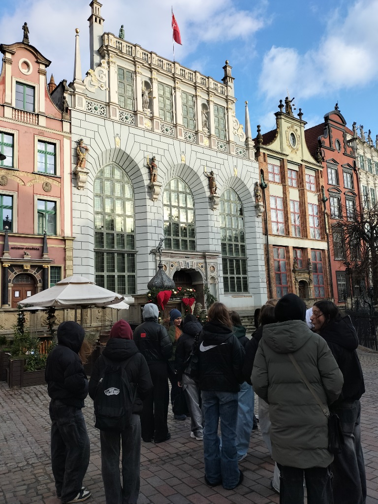 Podczas wędrówki uczniowie mieli okazję poznać historię dawnych obwarowań Gdańska, średniowiecznej katowni oraz Domu Uphagena – jednej z nielicznych w Europie kamienic mieszczańskich udostępnionych zwiedzającym. Pani przewodniczka barwnie opowiadała o życiu codziennym dawnych gdańszczan, o rozwoju handlu oraz o znaczeniu miasta jako jednego z najważniejszych portów Europy.