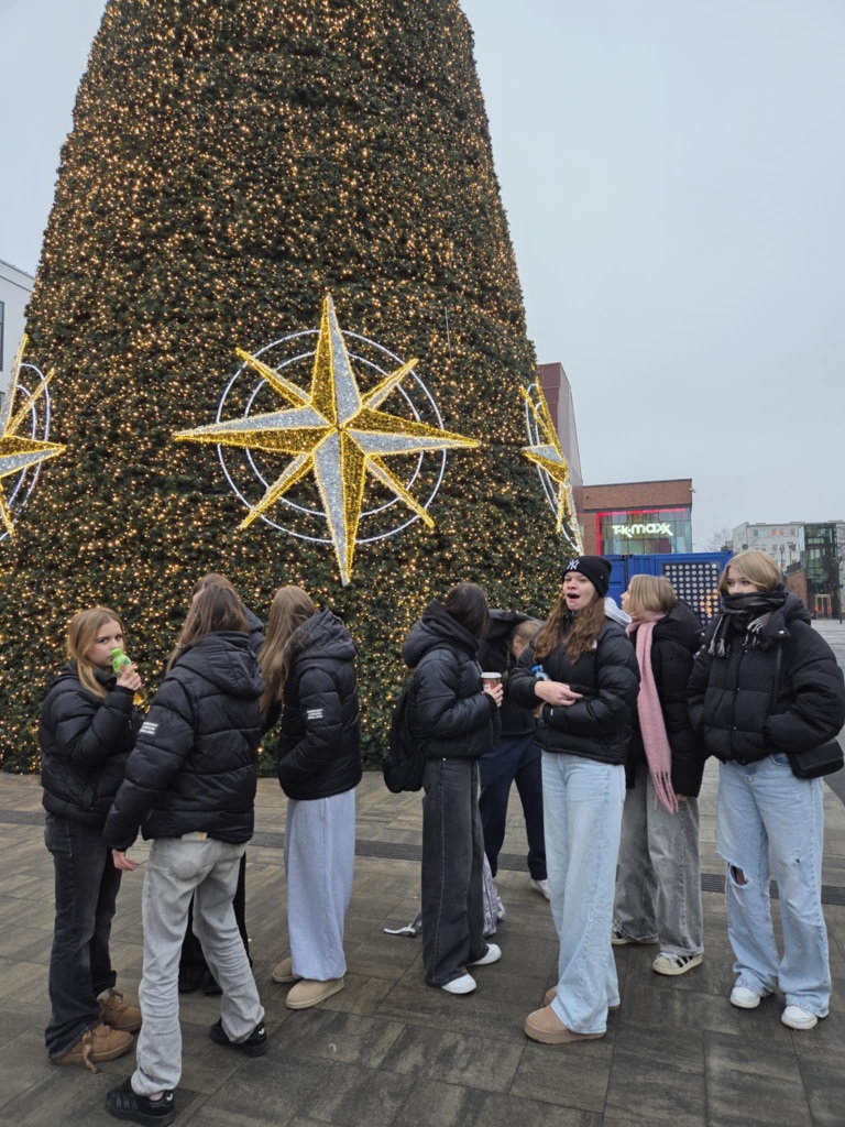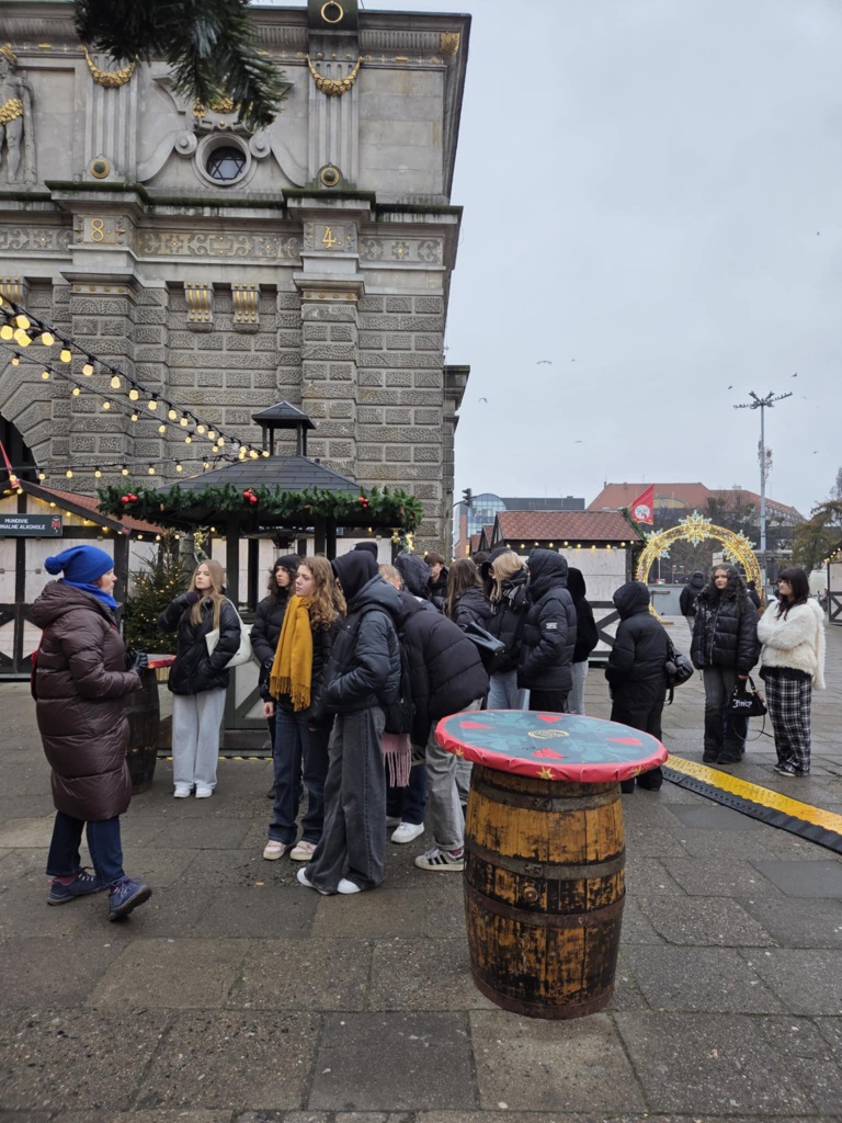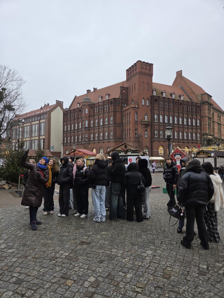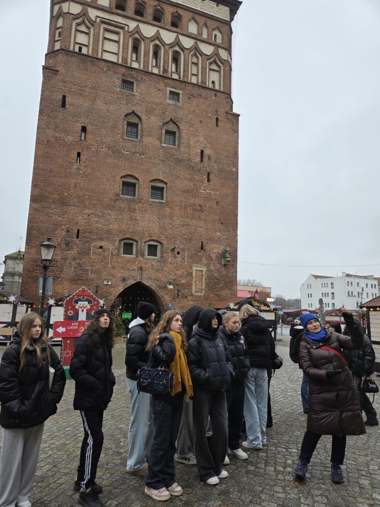 W środę, 3 grudnia 2025 r., uczniowie klasy I E uczestniczyli w wyjściu edukacyjnym po Gdańsku. Spacer rozpoczął się na Drodze Królewskiej, gdzie młodzież miała możliwość poznać najważniejsze miejsca związane z historią miasta, m.in. Złotą Bramę, Długi Targ oraz Ratusz Głównego Miasta. Uczniowie zobaczyli charakterystyczne gdańskie kamienice oraz dowiedzieli się, jakie wydarzenia rozgrywały się w tych miejscach w minionych stuleciach.