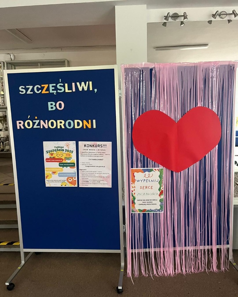 przy wejściu do szkoły każdy będzie mógł przypiąć na wielkim sercu karteczkę z miłym słowem lub życzeniem.