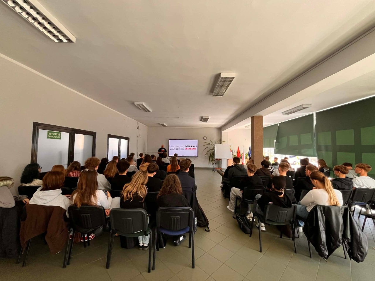 W poniedziałek w naszej szkole zrobiło się naprawdę poważnie – wszystko za sprawą warsztatów o hejcie w sieci. Zajęcia poprowadził Łukasz Gierek z fundacji HejtOFF, który od pierwszych minut nawiązał świetny kontakt z uczniami.