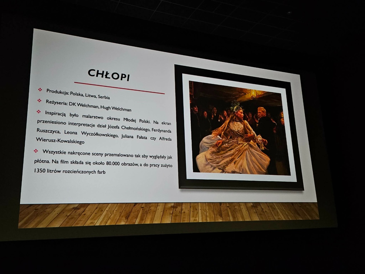 Podczas zajęć uczniowie analizowali warstwę artystyczną i interpretacyjną filmu, zwracając uwagę m.in. na sposób przedstawienia realiów życia na wsi, symbolikę poszczególnych scen oraz wyjątkową formę wizualną produkcji, inspirowaną malarstwem młodopolskim. Spotkanie stanowiło wartościową okazję do pogłębienia wiedzy z zakresu filmu, literatury oraz kultury.
